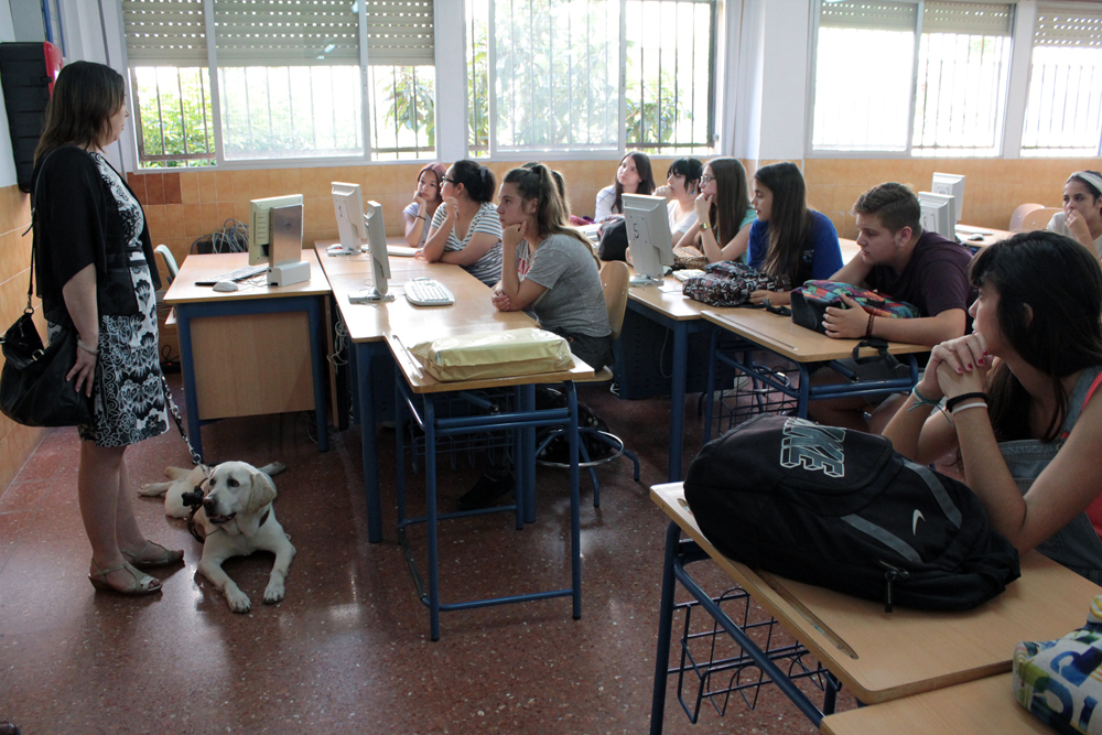 El pasado 10 de junio se desplazaron a nuestro centro representantes de la Delegación provincial de la ONCE acompañados por una precisa perra guía para realizar la entrega de premios.