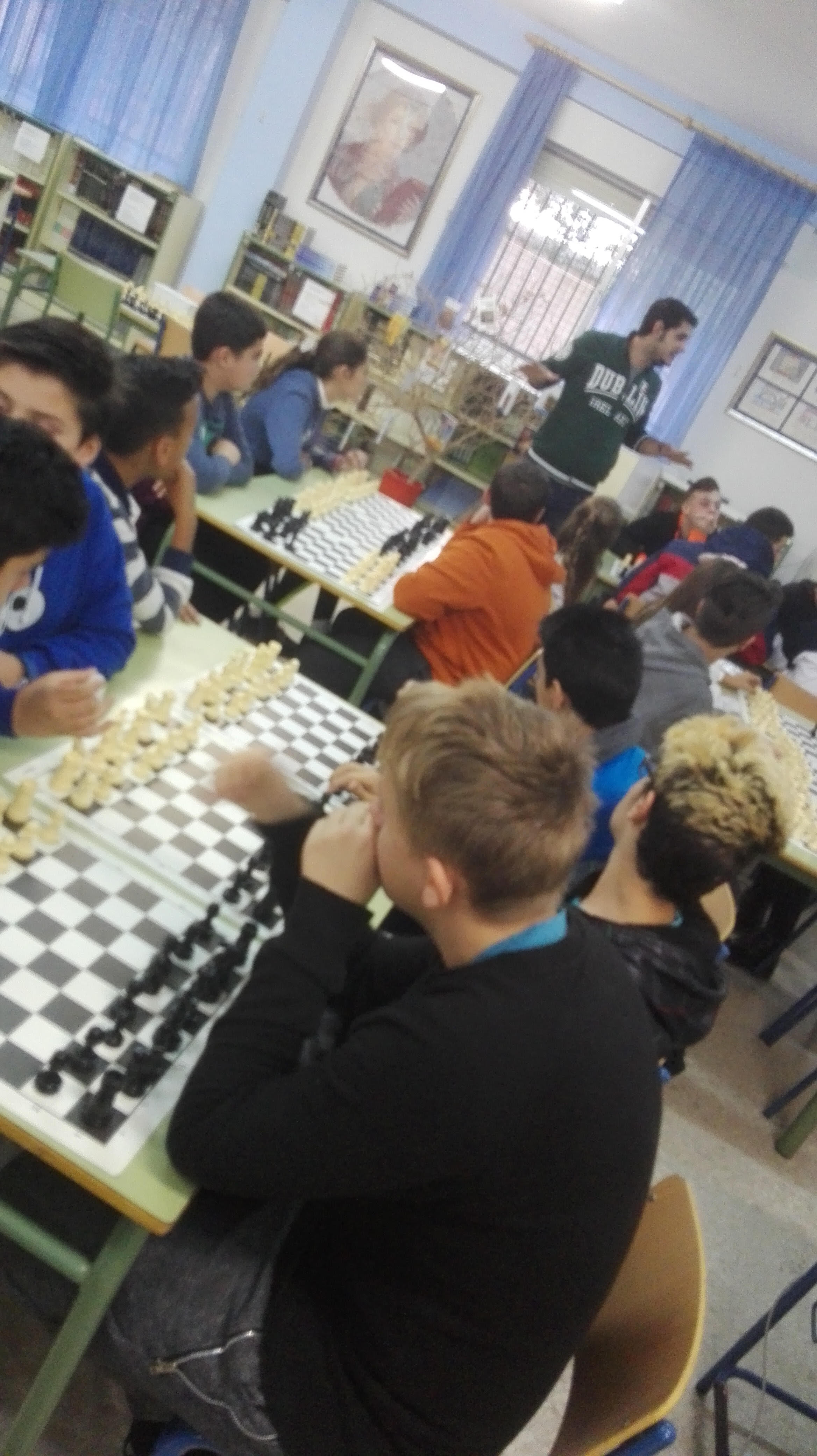 El pasado viernes 25 de noviembre vino un monitor de la empresa “Chesscuela” a realizar un TALLER DE AJEDREZ a nuestro instituto. La finalidad del mencionado taller es la de fomentar el ajedrez en nuestro centro educativo, donde se baraja la posibilidad de ofrecer el ajedrez como actividad extraescolar los lunes y/o los miércoles por la tarde. Todos los alumnos son invitados a participar en este taller, cuyo precio es de 15 euros al mes, una clase por semana o 20 euros al mes, dos clases por semana. Haría falta un mínimo de ocho alumnos para poder montar el taller. Los interesados deben ponerse en contacto con PACO GARCÍA LÓPEZ en el DACE. No hacen falta conocimientos previos sobre el juego.